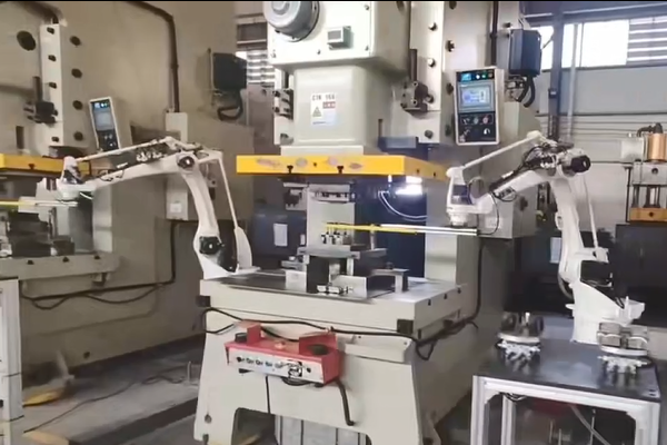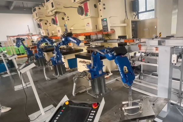沖壓機(jī)器人是專門針對各種沖床與油壓機(jī)配置,高效替代人工沖壓作業(yè)并實(shí)現(xiàn)自動(dòng)上下料的一種多用途工業(yè)機(jī)器人。沖壓機(jī)器人具有靈活垂直升降、水平旋轉(zhuǎn)、水平軸伸縮、工件旋轉(zhuǎn)、工件翻轉(zhuǎn)等多自由度動(dòng)作,并可根據(jù)沖床高度、送料高度、下料高度自動(dòng)適應(yīng),最大程度滿足各種沖壓產(chǎn)品工藝要求,從而實(shí)現(xiàn)無人化自動(dòng)化智能工廠。沖壓機(jī)器人可以廣泛應(yīng)用于多種批量生產(chǎn)廠家,如金屬鈑金加工沖剪、成形、引伸。還有如交通車輛、鐘表、家電、文具、手工具、五金、電腦等產(chǎn)品沖壓加工,還可加裝自動(dòng)送料機(jī),從事自動(dòng)移送整條生產(chǎn)線加工。同時(shí)沖壓機(jī)器人可根椐企業(yè)自身實(shí)際需求選擇數(shù)控沖床、氣動(dòng)型精密沖床、三圓導(dǎo)柱高速精密沖床或肘節(jié)式連桿式高精密高速沖床等配套,各系列沖床設(shè)備在五金自動(dòng)化加工中應(yīng)用廣泛,已被眾多加工企業(yè)所認(rèn)可。