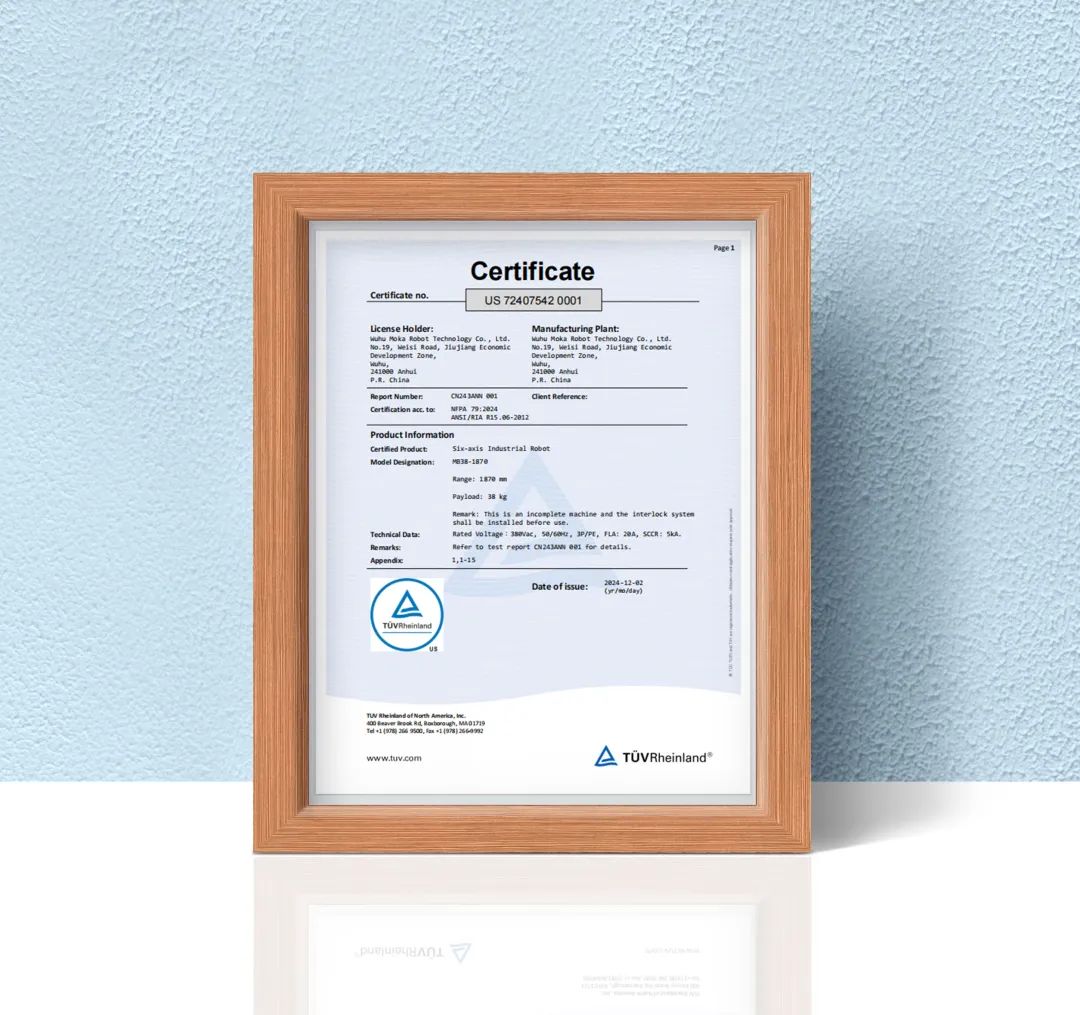 近日,在團(tuán)隊(duì)共同努力下,藦卡機(jī)器人產(chǎn)品經(jīng)過嚴(yán)格的測(cè)試、檢驗(yàn)、審核,憑借其高質(zhì)量和強(qiáng)有力的國際市場(chǎng)競(jìng)爭(zhēng)力順利獲得了TüV頒發(fā)的北美認(rèn)證證書。此項(xiàng)證書不僅標(biāo)志著藦卡機(jī)器人產(chǎn)品符合國際相關(guān)嚴(yán)格標(biāo)準(zhǔn)和國際市場(chǎng)要求,同時(shí)也為藦卡機(jī)器人進(jìn)一步拓展全球市場(chǎng)奠定了良好基礎(chǔ)和強(qiáng)力的支撐。